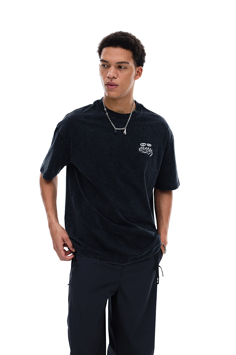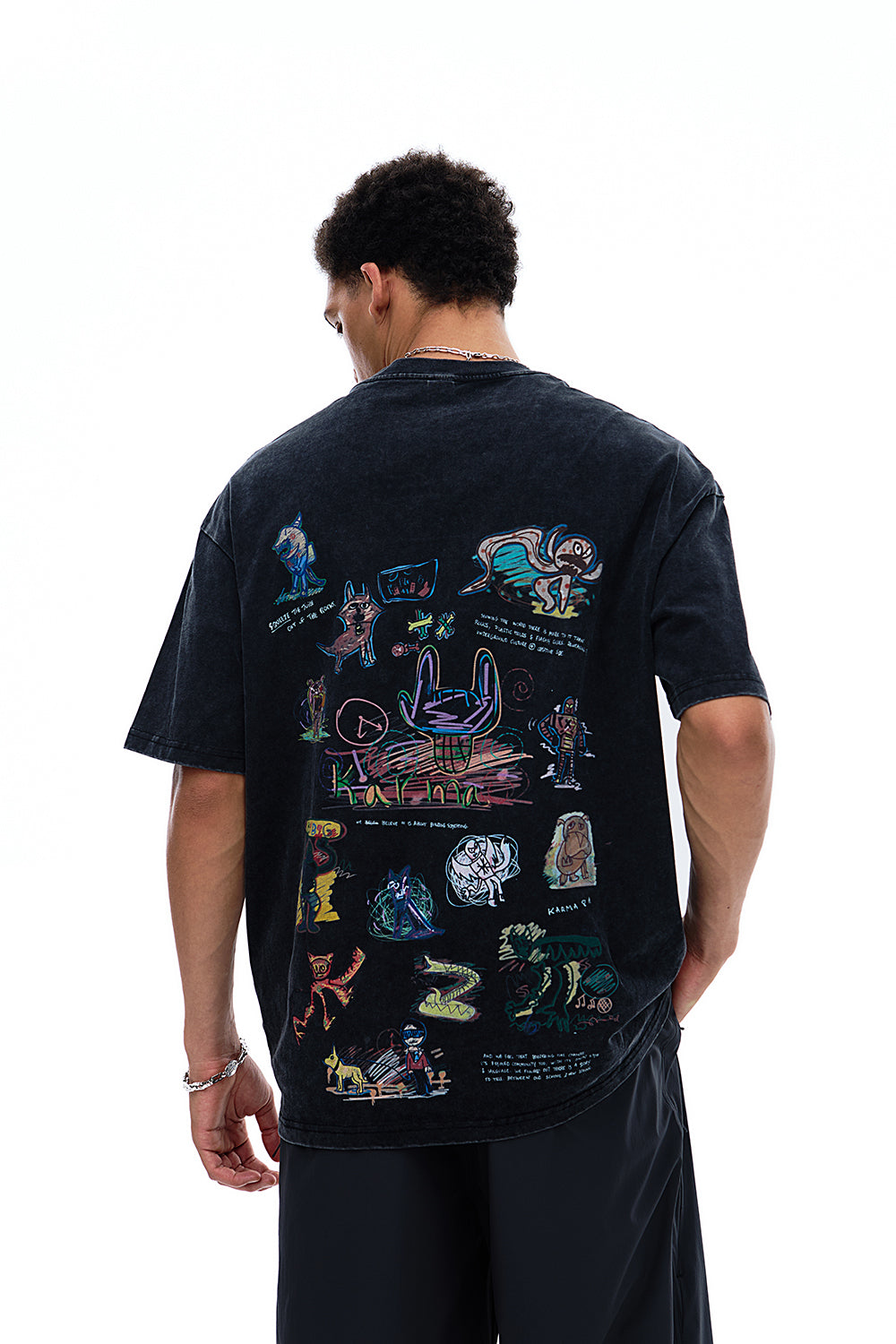 Designed for art-loving adventurers, this 100% cotton tee blends vintage stone-washed texture with bold hand-drawn graphics—marrying casual comfort with expressive style.