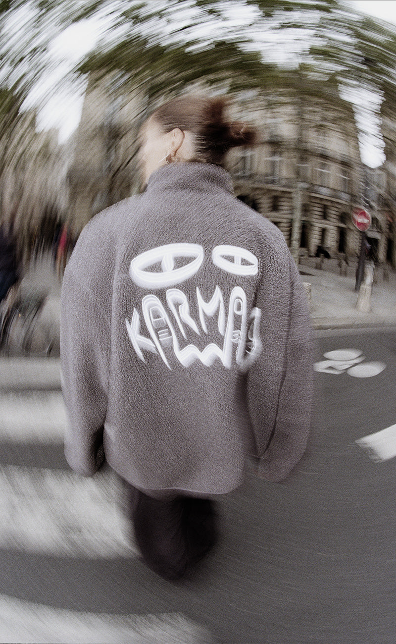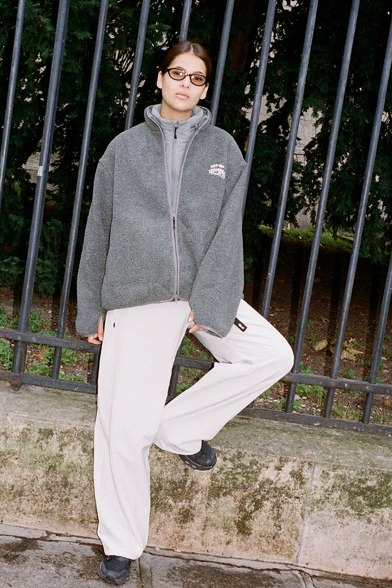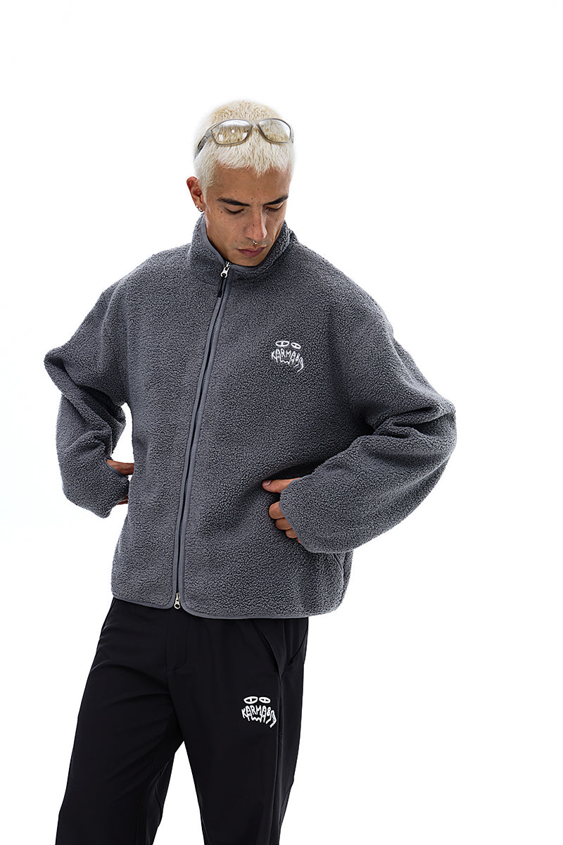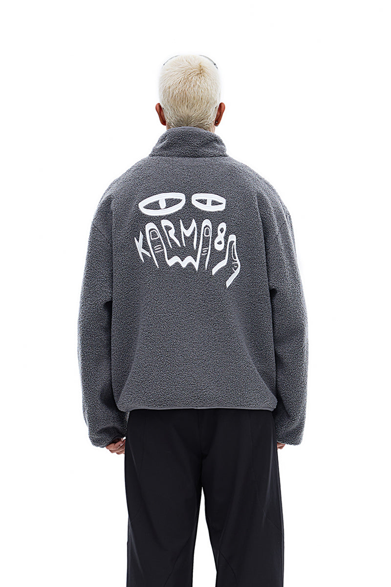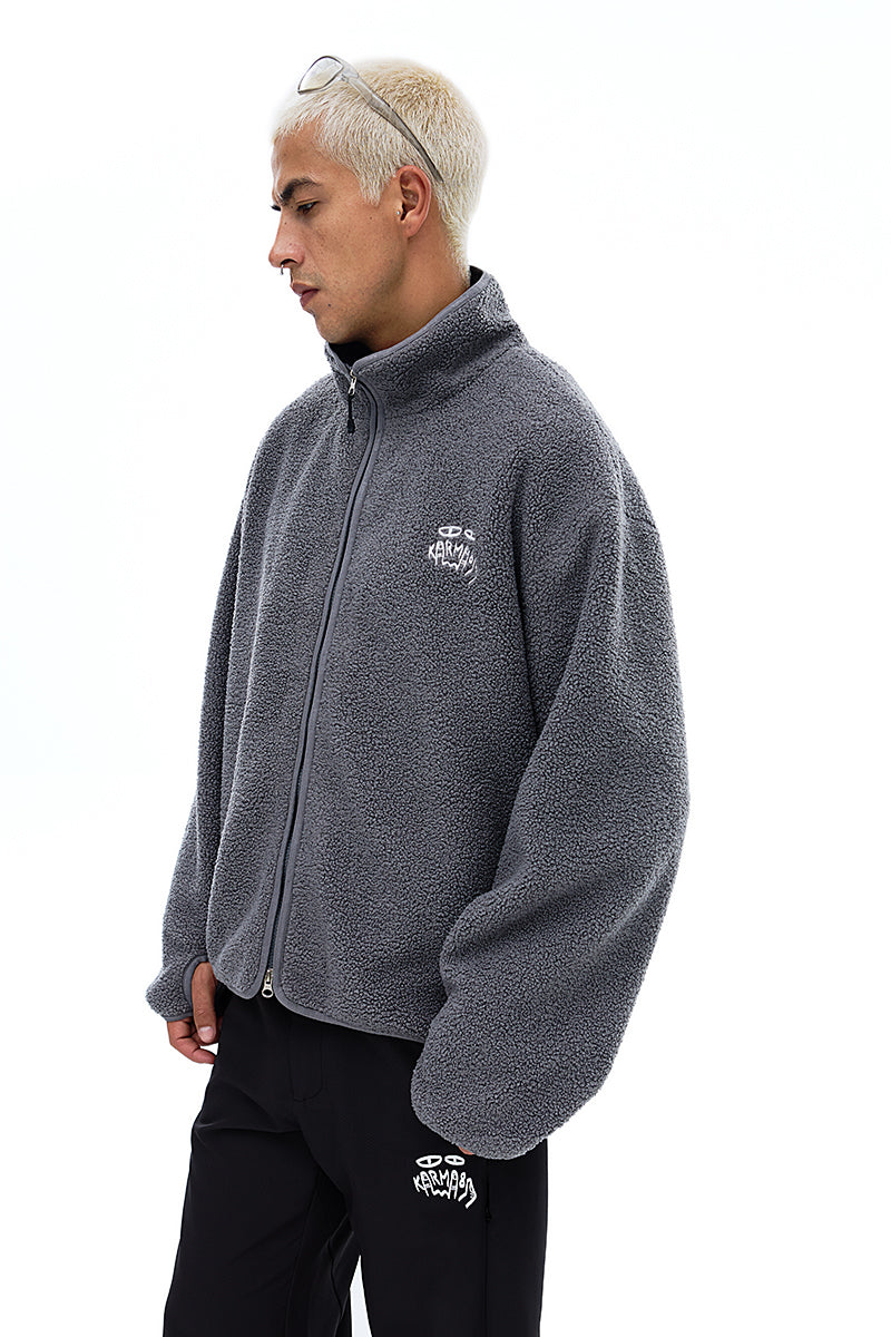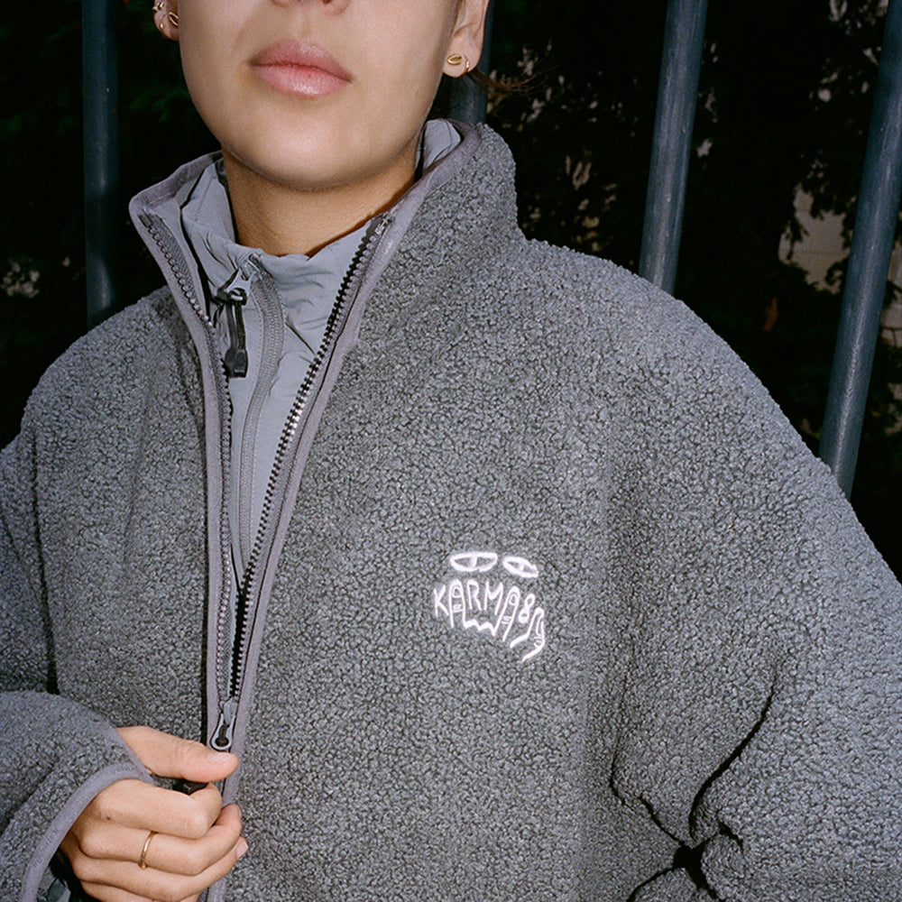 Plush sherpa fleece in a clean, structured cut. Hidden details throughout — thumbhole cuffs, tonal logo hits, and a custom print tucked inside the pocket.