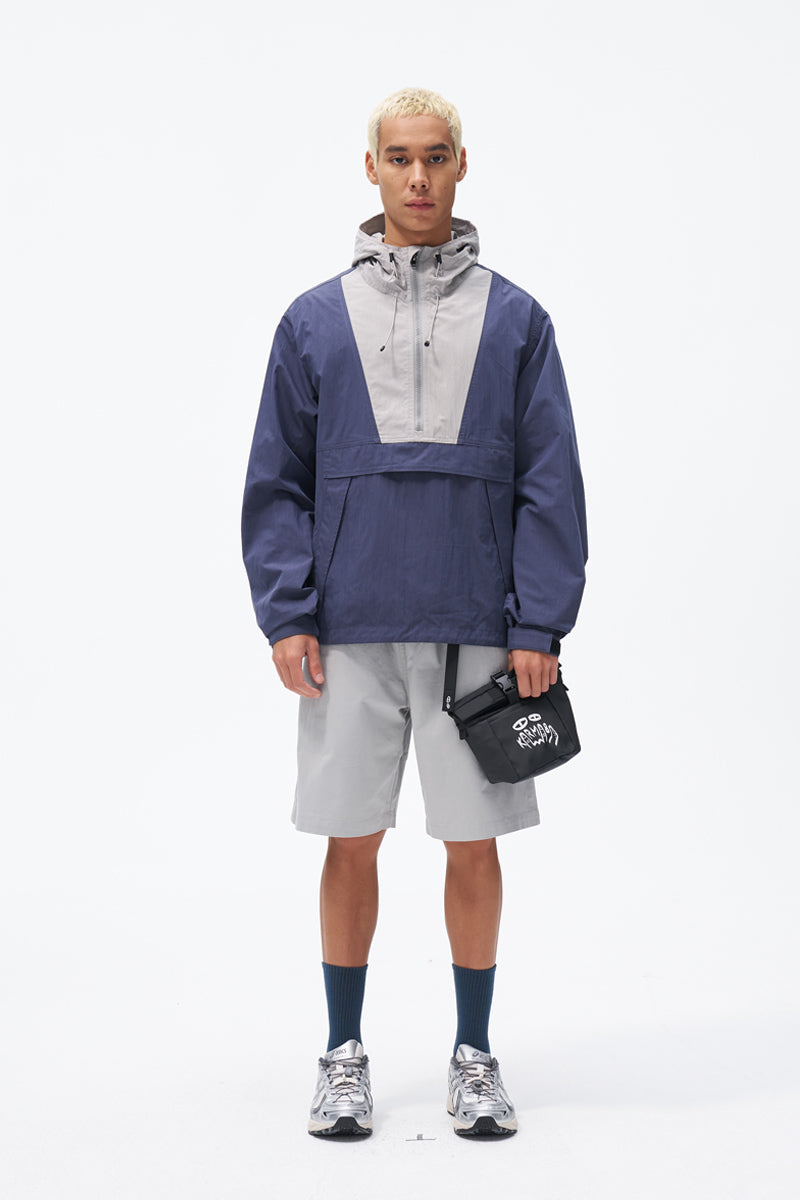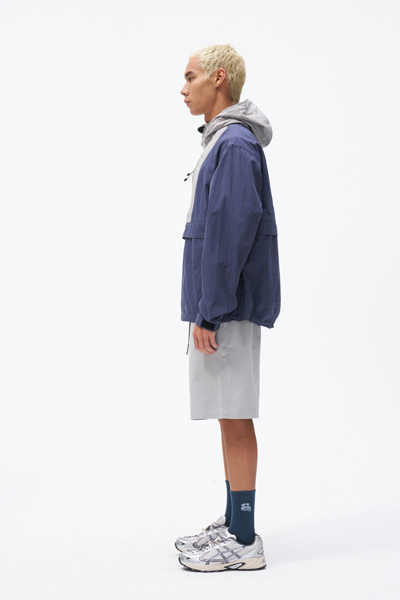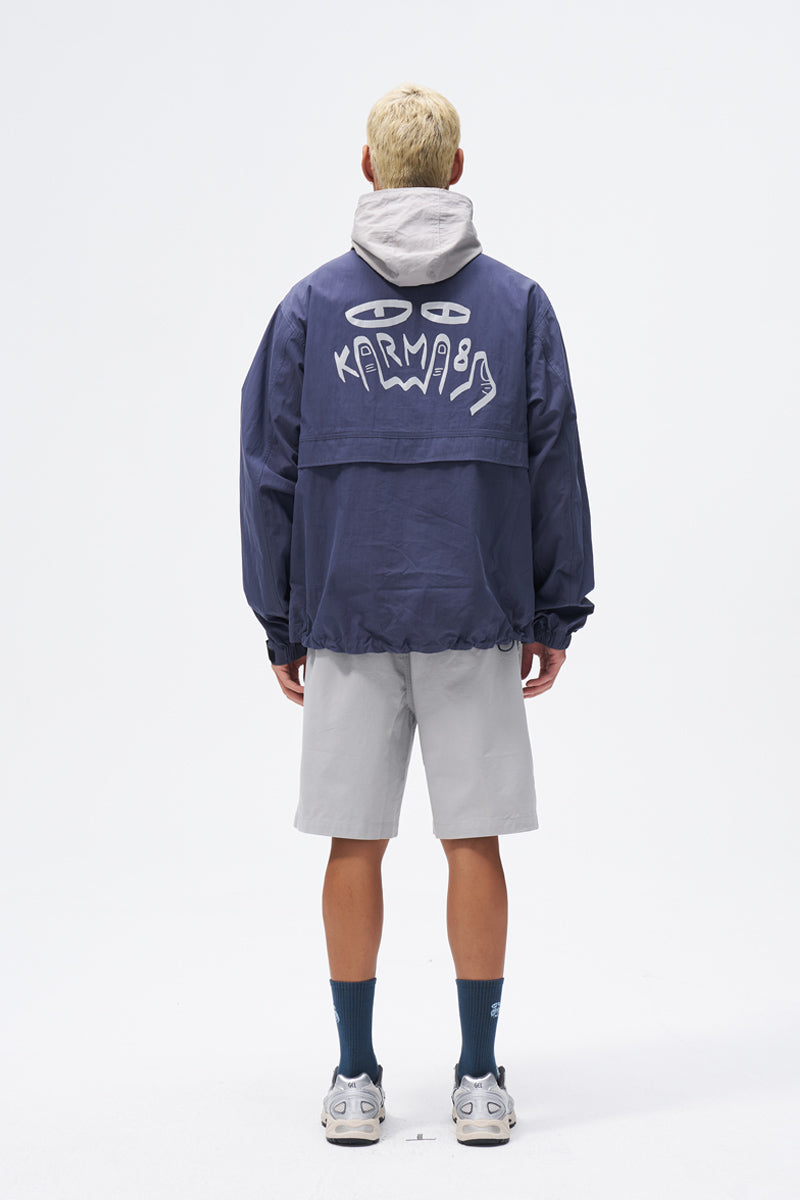 Lightweight utility with modern sporty accents. This half zipped hoodie features a sharp color-blocked design, combining a deep navy body with a light grey hood. The practical half-zip front, adjustable drawstring hood, and elastic cuffs ensure a clean, comfortable fit.