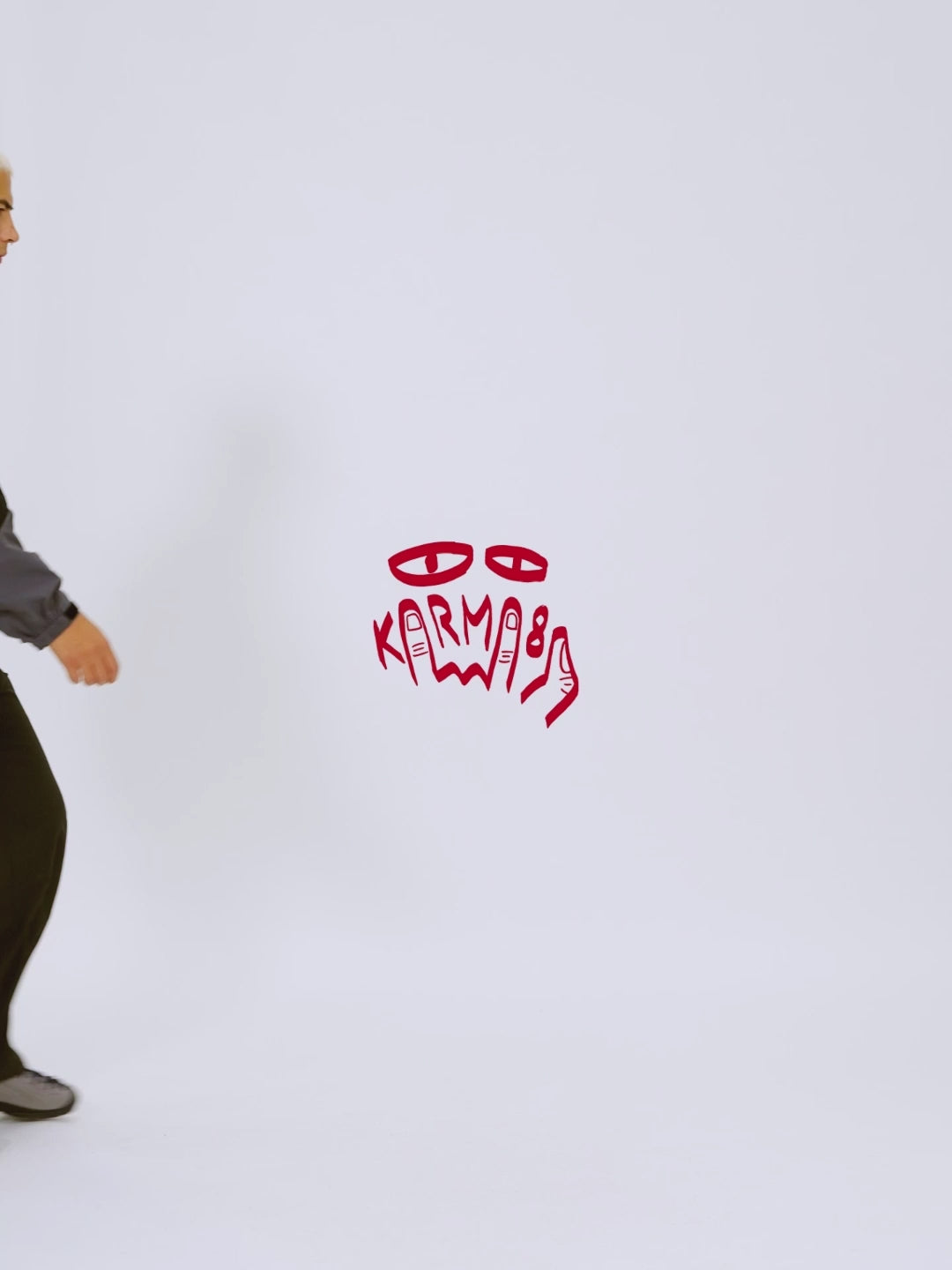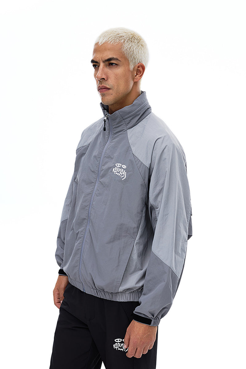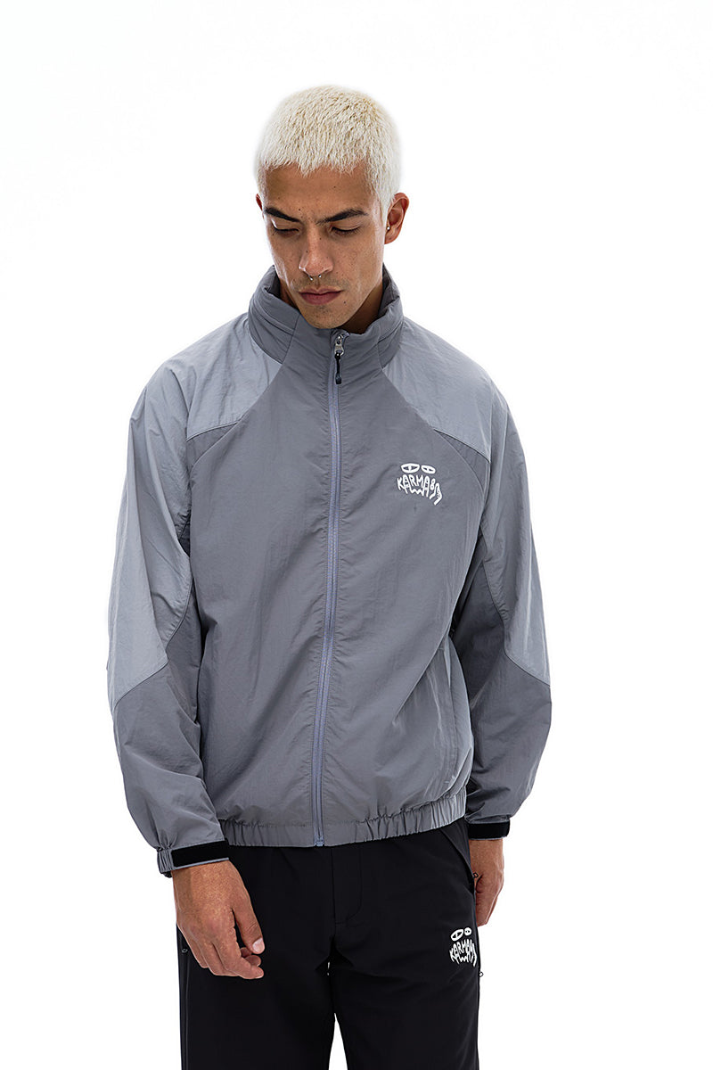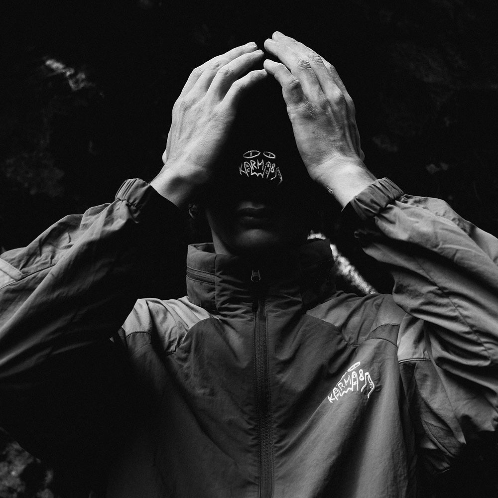 • Karma8a eye tab at cuffs + tonal chest embroidery