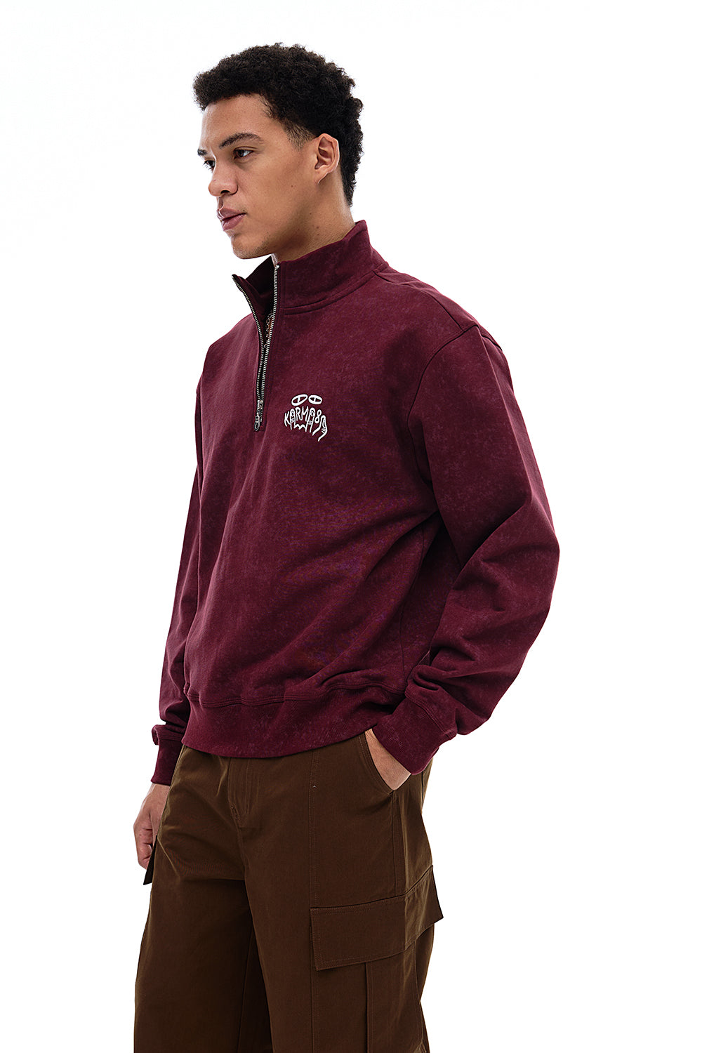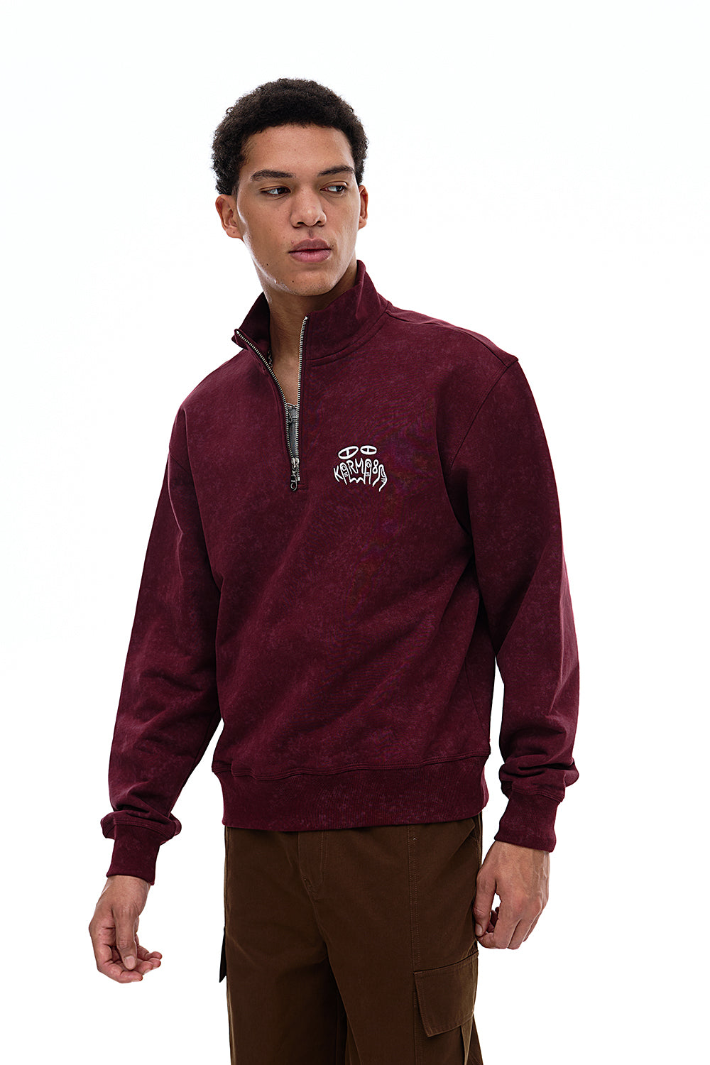 • Precision-embroidered Karma8a logo at chest