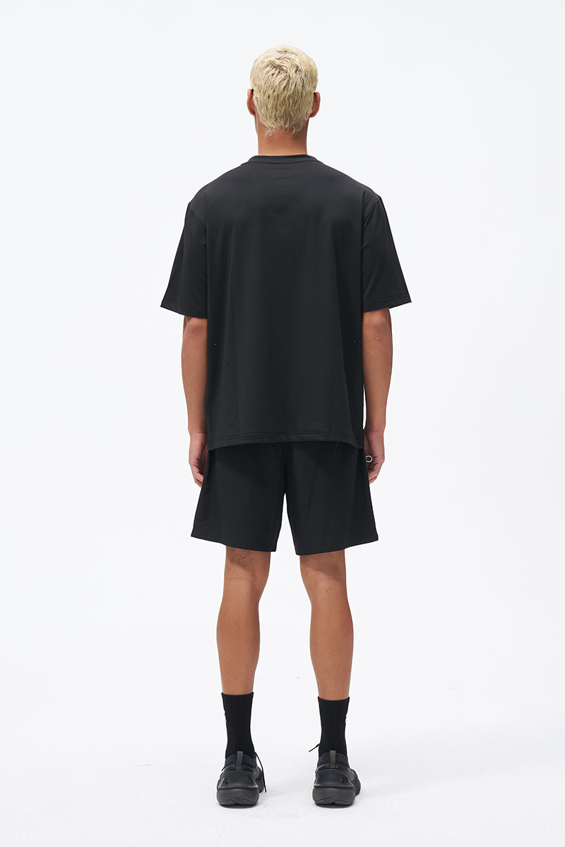 Performance fabric with laser cut perforations in high sweat areas for extra breathability, perfect for warmer days outside or indoor workouts.