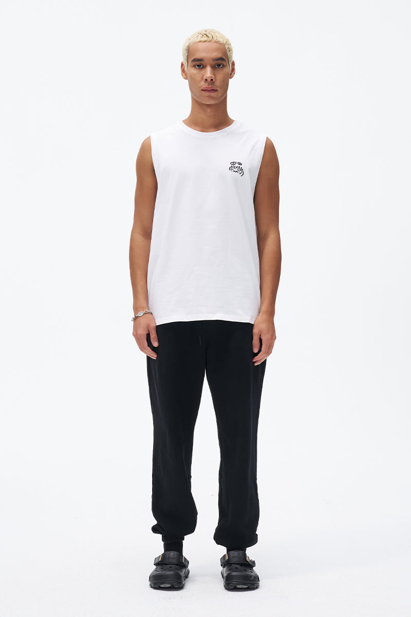 - Relaxed-fit sleeveless t-shirt, aka suns out guns out tee.