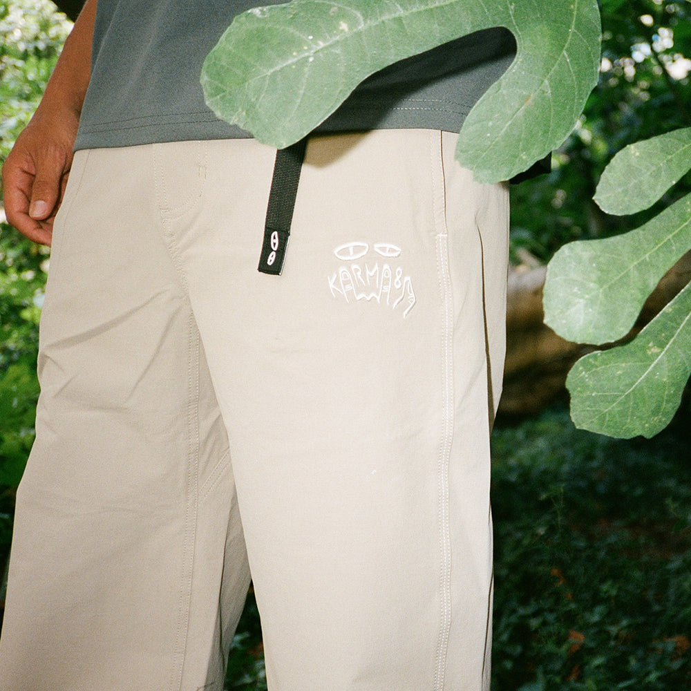 • Subtle Karma8a logo embroidery on left leg