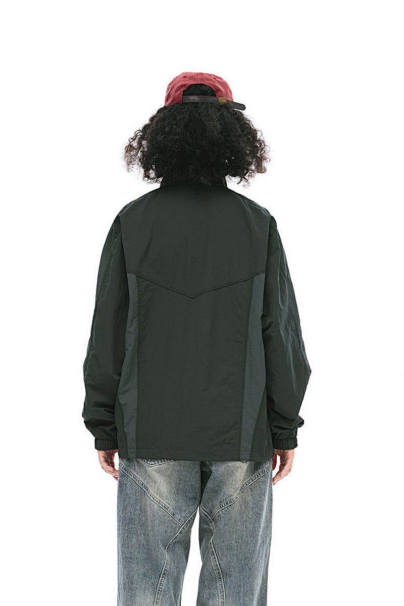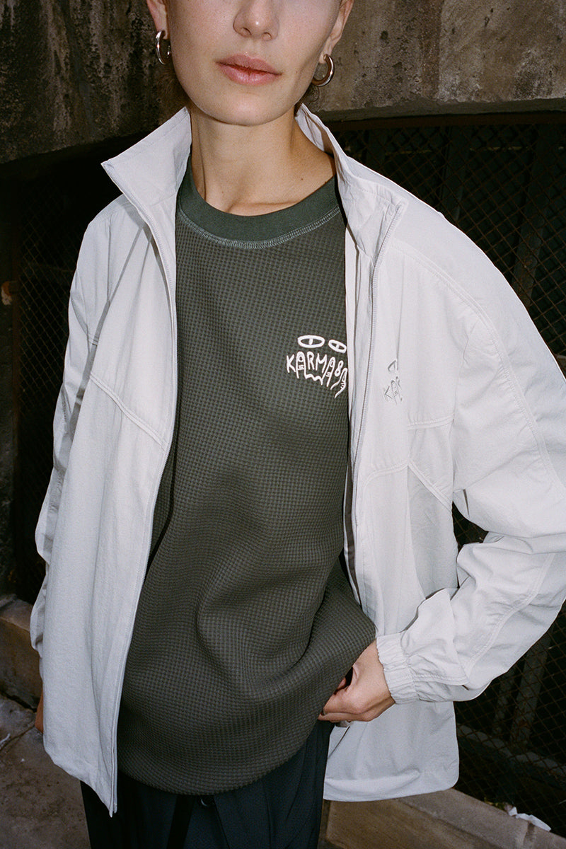 Crafted from reinforced taslon nylon, this jacket layers tonal blocks into a structured silhouette. Clean, water-repellent, and designed to move through the city with purpose.